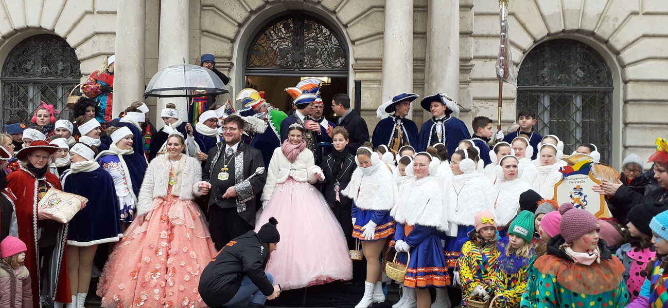 Schäffler und Narrwalla vor dem Rathaus- am Samstag war Faschingsauftakt in Ingolstadt. Die Schäffler haben nach sieben Jahre wieder ihren ersten Tanz aufgeführt – zu der bekannten Melodie von „aba heit is koid“. Insgesamt 120 Auftritte in sechs Wochen muss die Gilde des MTV Ingolstadt absolvieren. Die Narrwalla hat sich mit Garde, Prinzenpaaren und Hofmarschall von Oberbürgermeister Kern für die Faschingszeit den Rathausschlüssel geben lasen. Bis Aschermittwoch regieren die Narren.